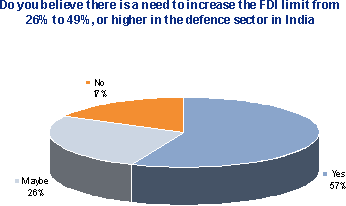 The domestic industry, led by companies such as Larsen & Toubro (L&T), M&M and various Tata group businesses, however wants the limit raised only to 49% so that they maintain control and have a chance to grow, having been restricted till relatively recently from doing more than supply components. This view has been backed by a recent Confederation of Indian Industry-KPMG survey with 57% of respondents saying “yes” to a higher FDI limit and 26% more saying “maybe”.