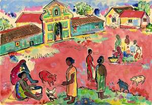 The beat-the-estimate trend was set with the first lot, a happy Goan village scene (above -gouache on paper 10x15in) painted by Souza when he was 21. That was estimated at £4,000-6,000 and shot up to £22,000 (£27,000, $39,930 incl premium).