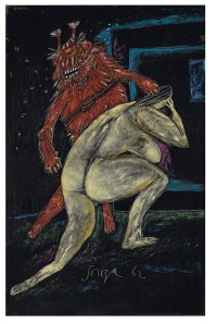 I was unsuccessfully interested in four or five paintings at the lower end of the price ranges – aiming especially for a jolly 22x12in untitled nude (below right) painted in gouache on card in 1950 that was estimated at £2,500-3,500 and went for a hammer price of about £13,000 (£16,250, $23,595 including the premium).