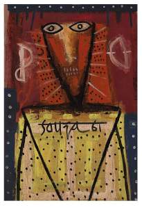 Soon after that, a Roman Catholic Phantom (below -polyvinyl acetate on canvas 32x22in) more than doubled its top estimate and achieved a final price with premium of £55,250, and a face of Christ 27x20in (oil on board) estimated at £50,000-£80,000 went for a final price of £349,250. Later a typical nude (oil on board 48x32in) from Souza’s 1960s period more than doubled estimates to finish up at £169,250.