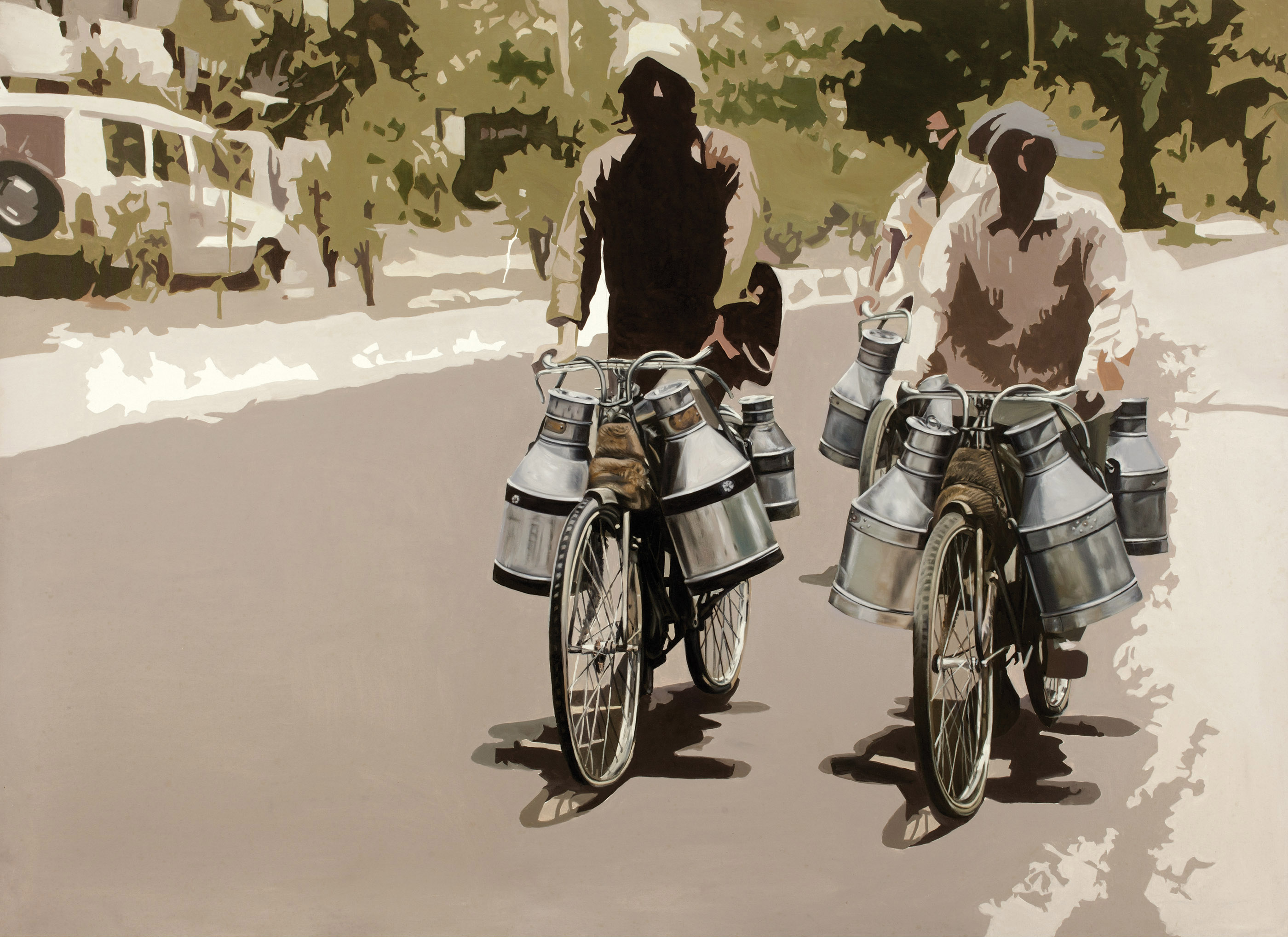 But he did better in the Saffronart sale, where a possibly more socially-conscious similarly sized study (below) of hardworking doodwhalas – cycle milk sellers – doubled top estimates to fetch $494,500m (Rs2.2m) including premium.