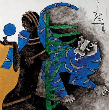 As has been happening for the past year or so, the results show however that not all famous artists’ works do well. For example, a few Husain’s and Souza’s did not sell in these auctions – including, perhaps surprisingly, a rather striking 48x47in acrylic on board (above) by Husain, depicting human and animal figures, that Saffronart estimated at around $180,000-$200,000.