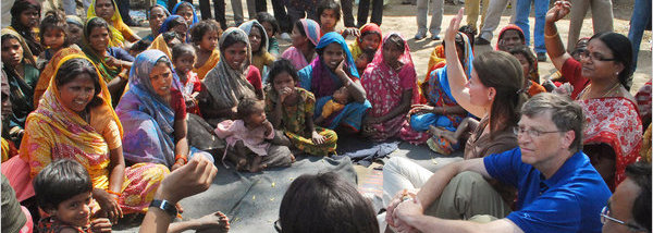 Gates and his wife Melinda have been in India this past week, along with Buffett who amazingly was visiting for the first time. They toured health projects (below) that they are funding in Bihar, India’s poorest state which has very high maternal mortality rates, and then met about 70 top industrialists from family companies to advocate philanthropy and discuss the sort of “giving pledges” that they encourage in the US.