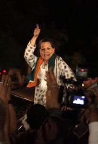 Sonia Gandhi herself (right, celebrating India’s cricket World Cup win) is not taking a lead and her son, 40-year old Rahul who is widely assumed to be a future prime minister, is showing no signs of wanting to move into an accountable political role. Indeed, he underlined how he likes working in a low-key way as a Congress Party general secretary when he said last week, in reply to provocation from a retired senior judge, that “becoming a hero….is of absolutely no interest to me” – ignoring the point that the country needs a leader not a hero.