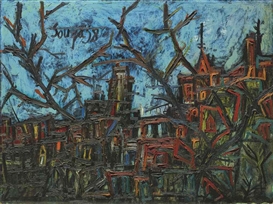 A splendid but somewhat over-priced Souza 1958 landscape (right) reached only £280,000 against a £300,000-500,000 estimate, but a pair of doors with his works inlaid as panels sold for £80,000, which was the bottom end of the price range.