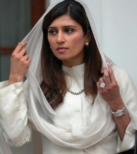 Khar comes from an privileged feudal family background at the top of Pakistan’s society. Yesterday she was demurely dressed in white, with fashion touches that included a Hermes black Birkin handbag, a string of pearls and high black heeled shoes.