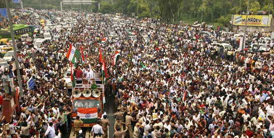 The joint drafting committee failed to reach agreement and Hazare revived his movement in June, threatening a new hunger strike from the middle of this month. The government then messed up by jailing him when he failed to agree on the length of his fast and accompanying mass protests. It quickly reversed that decision and tried to release him, but he continued fasting in jail until terms were agreed for a 15-day public fast that started last Friday at old Delhi’s Ramlila festival grounds.
