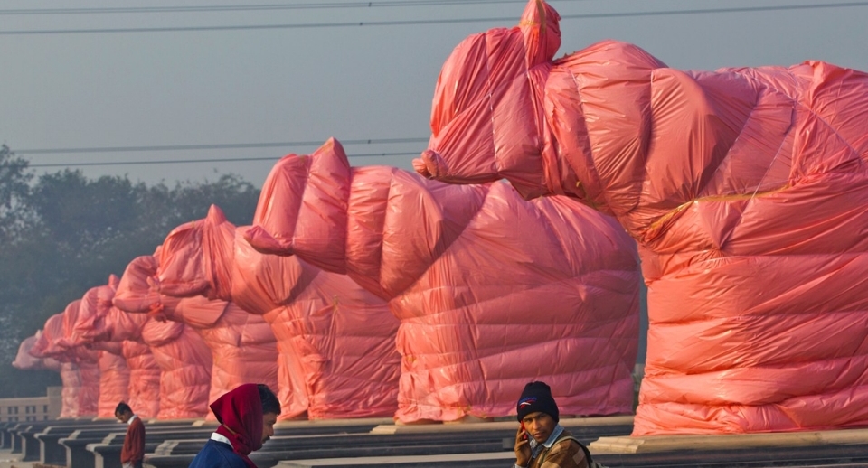 These giant stone elephants sitting on their pedestals in a huge park outside Delhi were never for riding, and now they are not even to be seen. Built here and in Uttar Pradesh’s capital city of Lucknow, along with other massive stone and bronze monuments, stupas, and domes (below) at a reported cost of Rs4,500 crore ($1bn), they are designed to glorify Kumari Mayawati, the state’s controversial chief minister and be a symbol of empowerment for her Dalit low caste.