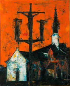 The most dramatic was Crucifixion (above) from Raza’s early days before he focused on abstract shapes. It far exceeded a £40,000-60,000 estimate and was sold on a £85,000 bid (£103,250 – $160,554 with premium) to Kiran Nadar who bought the Tyeb Mehta.