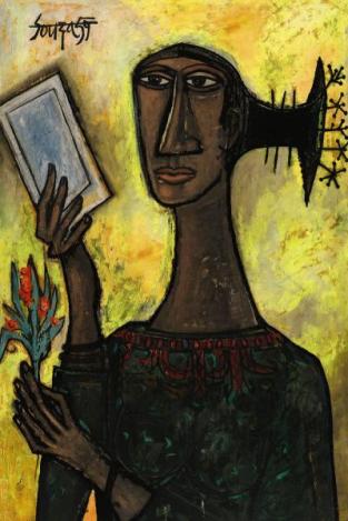 Sotheby’s had the same problem last week with another Indian modern master, F.N.Souza, when it offered a stunning Woman with Mirror and Flowers (right) on an estimate of £180,000-220,000 that was roughly the same as Christie’s failed to achieve two years ago. Sotheby’s also failed to find buyers for its other two top priced works, one by Husain and the other a £300,000-400,000 work by Sayed Haidar Raza.