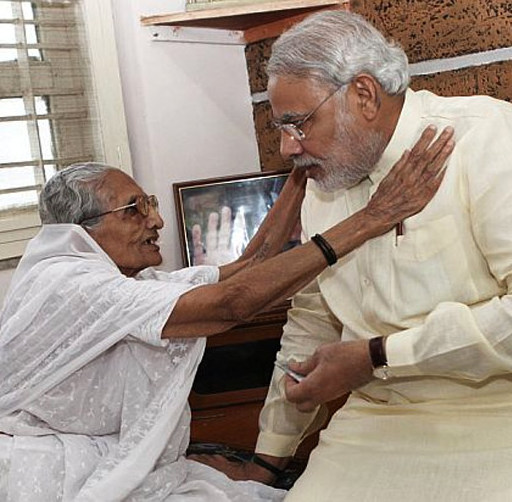 He comes from a poor low caste (Other Backward Caste or OBC), which could be an electoral asset if he can moderate his style. As a boy, he worked on a tea stall at a railway terminus in Gujarat till he became a political activist in the Rashtriya Swayamsevak Sangh (RSS) or National Association of Volunteers, the BJP’s hard-line parent organisation that was behind his anointing yesterday. That is a dramatically different social background from the patrician Gandhi dynasty. (Modi, right, with his mother)