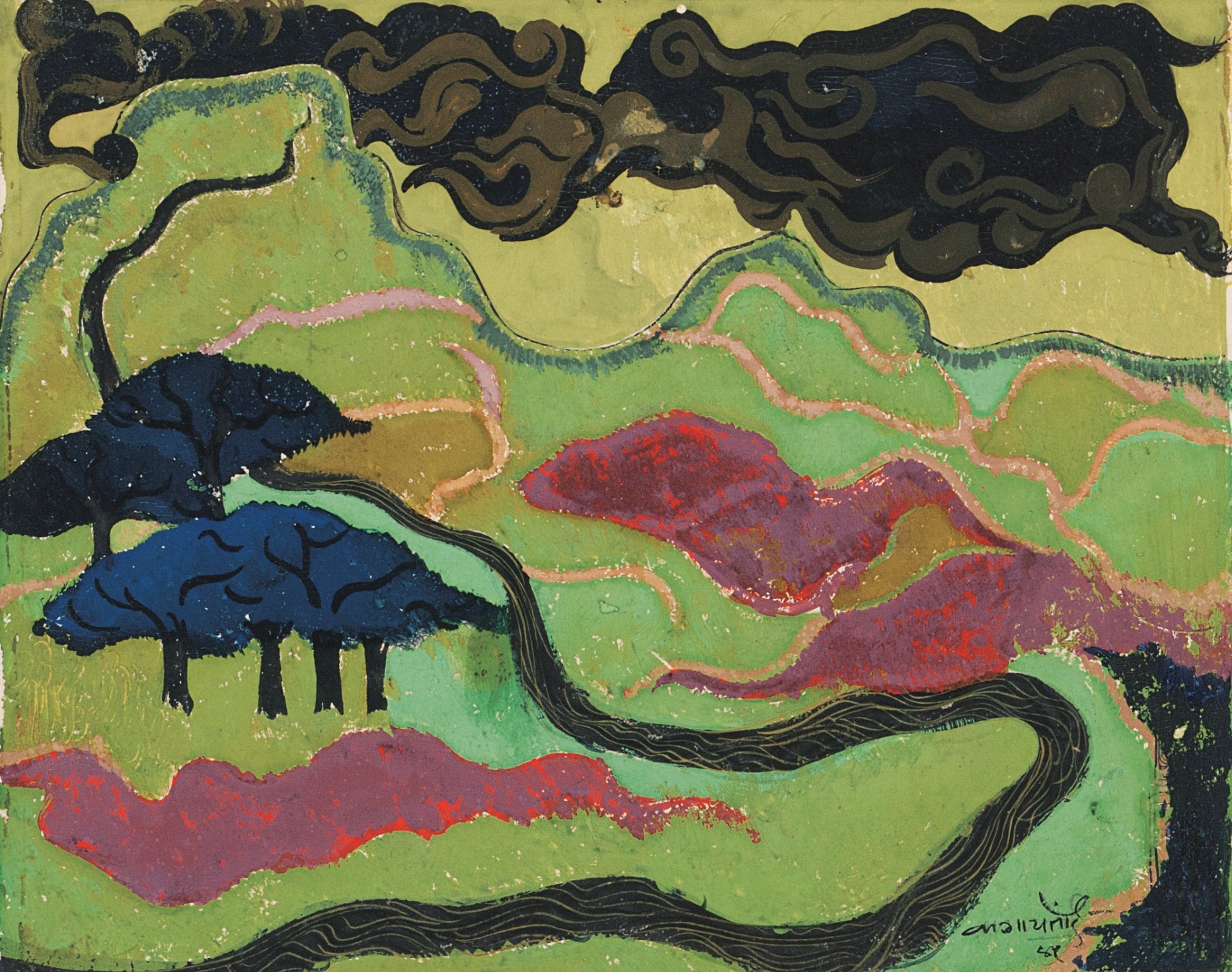 One of Gandhy’s Gaitonde works set the auction – held in Mumbai’s Taj Hotel – off to a spectacular start as the first lot. An untitled early landscape (left) of just 9in by 11in, it beat the estimated price range of Rs8 lakhs to 1.2 crore ($13,000-19,400) by around ten times and went for Rs80 lakhs – that’s Rs9.83 crores ($157,200) including buyer’s premium. It was a gouache with pen and ink on card, and had Chemould Frames label on the reverse side.