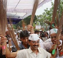 Arvind Kejriwal and his collection of broom-wielding Aam Aadmi volunteers (below) offer the basic political upheaval that India surely needs if it is to shake itself free of widespread corruption, crony capitalism, and poor governance – but that is a long-term play with all the risks inherent in necessary but unpredictable disruption.