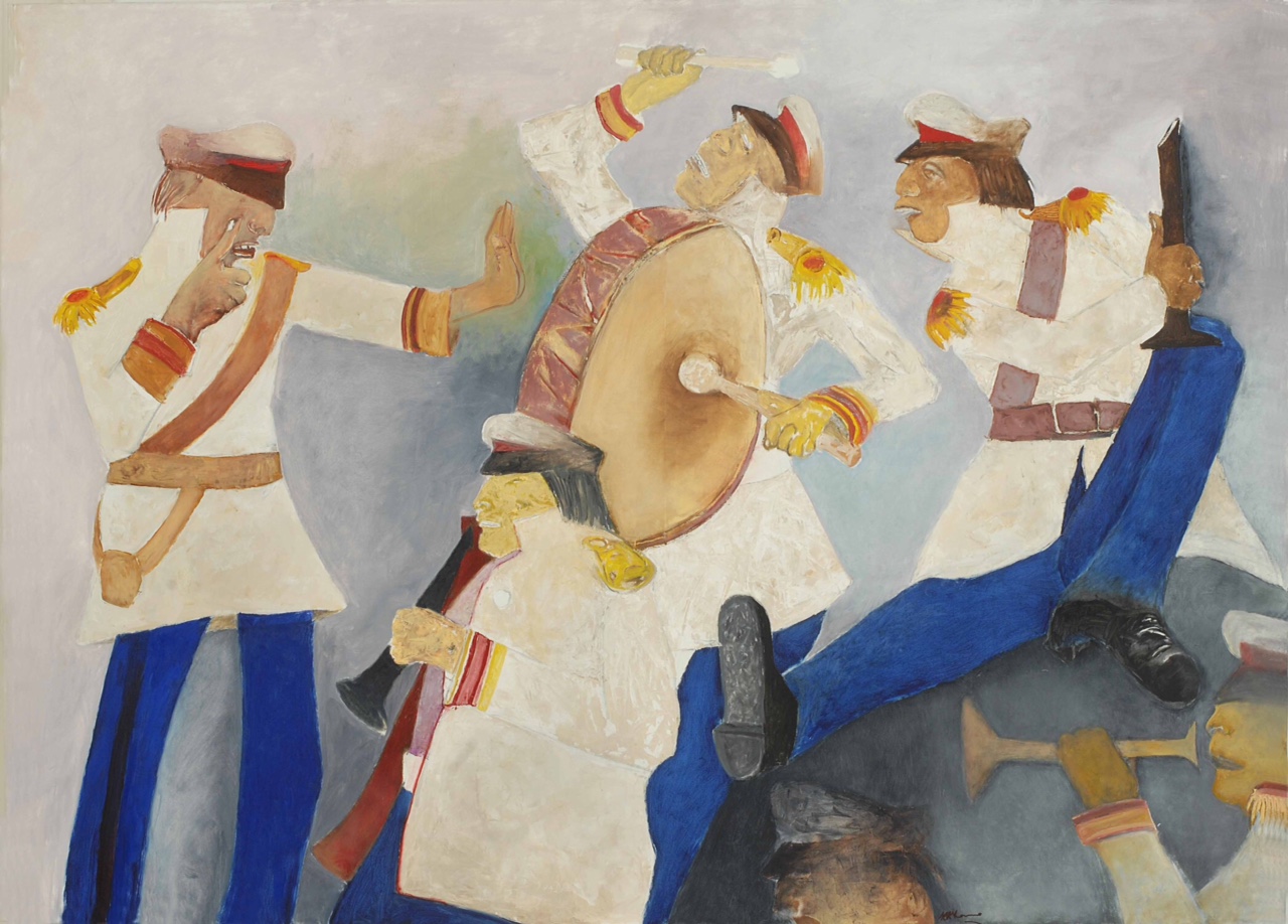 There has been a special emphasis on 89-year old Krishen Khanna, with the release of a film on his life and work, and an exhibition of his recent paintings at the Grosvenor Gallery in Mayfair (see his Bandwallas painting below).