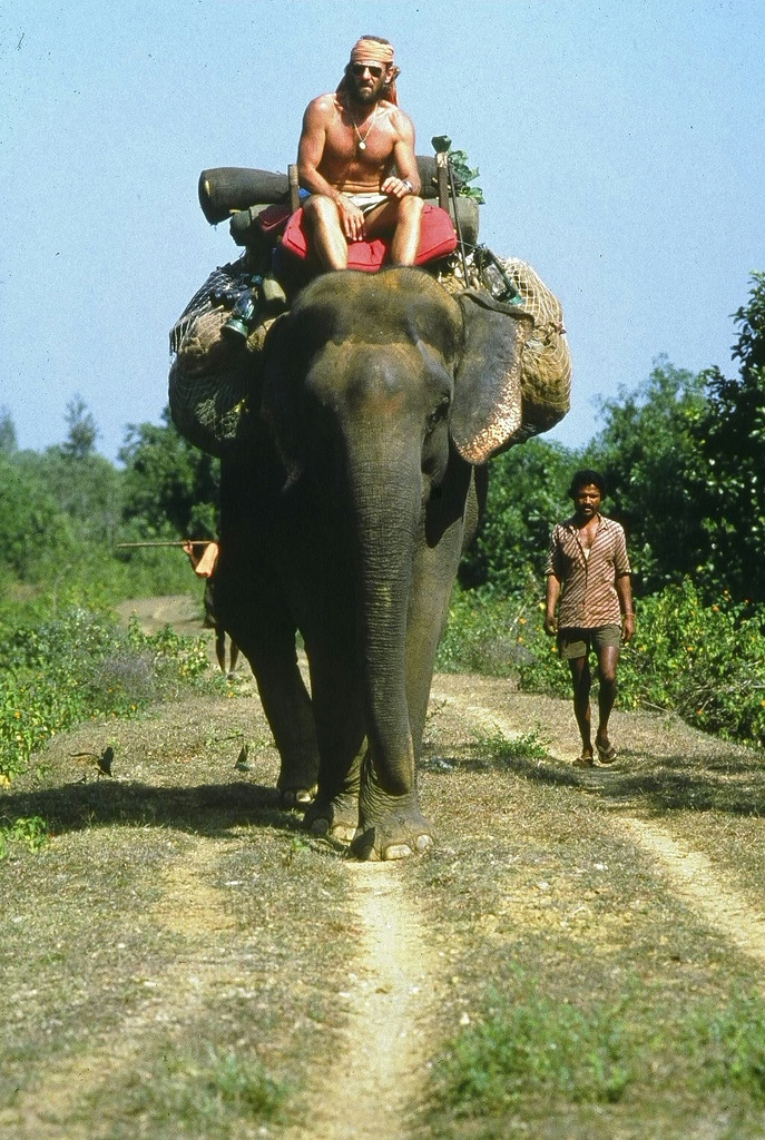 His involvement began in 1988 when he bought a scrawny beggar elephant called Tara and rode her over 600 miles across India (below). He then wrote a best-selling book, Travels on my Elephant.