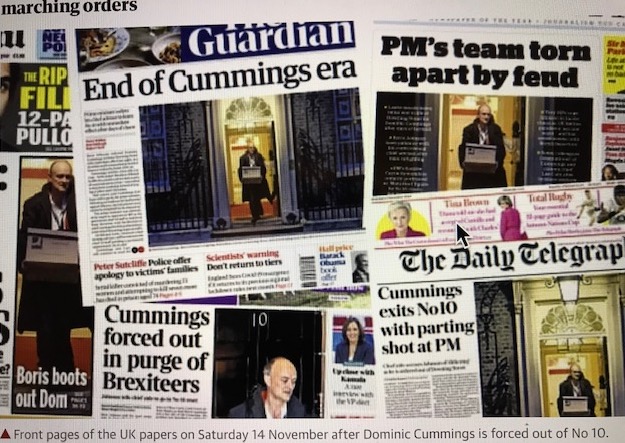 There have been some suggestions that the imminent passing of the Trump era led Johnson to hasten Cummings’ departure, which was already being discussed, maybe to happen early in January after Britain seals its departure from the European Union (EU).