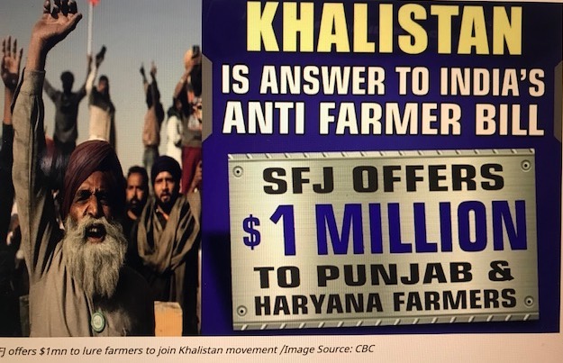 Khalistan’s banned Sikhs for Justice (SFJ) banners have been seen (left) on the highway protests . The government should therefore be taking care to ensure that the current protests do not result in a revival of social unrest among the youth – earlier generations provided the foot soldiers for the Khalistan movement.