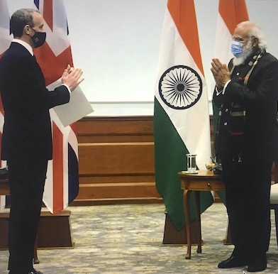 Raab met prime minister Narendra Modi today (Dec 16) and talked about Covid vaccinations, among other subjects – the Serum Institute of India is to produce over a billion doses of the vaccine that is being developed by Oxford University and AstraZeneca. Yesterday Raab met S.Jaishankar, the foreign minister .