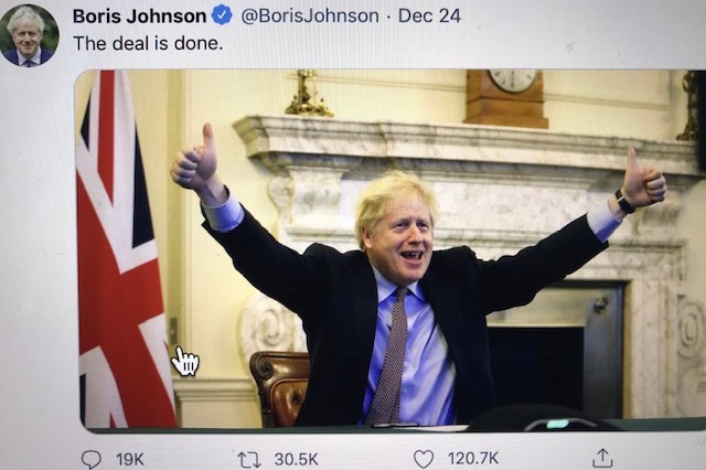 Johnson’s shortcomings and failure to understand detail were displayed again when he announced the terms of the Brexit trading deal on Christmas Eve. He said the deal did not saddle Britain with any “non-tariff barriers” for trade which, as the BBC put it, was “manifestly wrong”. Government websites have lists of “tens of millions of new customs declarations, export health checks, regulatory checks, rules of origin checks, conformity assessments,” exclaimed the BBC.