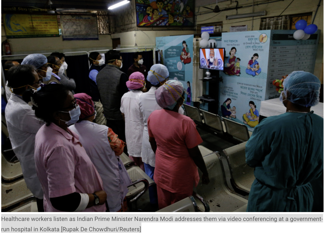 “This virus took away so many people who were close to us. I offer my deepest condolences to their families,” he told health workers in a virtual address, halting for many apparently emotional pauses when he seemed to be fighting back tears. The media broadly reported the emotion, but Modi was mocked by opposition leaders who doubted his sincerity.