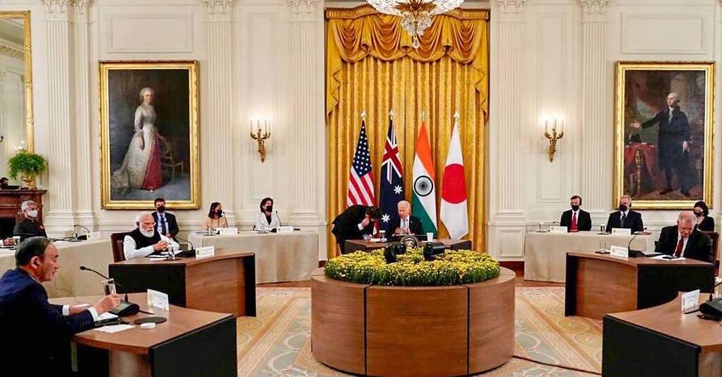 Six months ago the four leaders came together for the first time in a virtual meeting – earlier contacts had mostly been between officials. The Washington meeting (photo below) was the first time they had met face to face. They discussed issues such as trade, the Covid pandemic, climate change, and stability in the Indo-Pacific, plus the need for Afghanistan to develop without becoming a hub for terror and condemnation of Pakistan’s role in supporting terror groups.