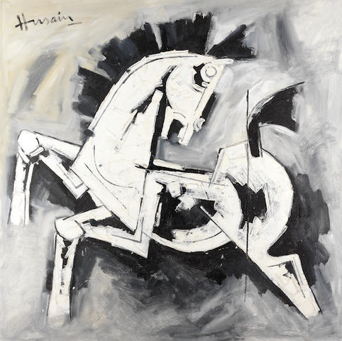 A prancing horse (above) by M.F.Husain (1915-2011), one of the best known Progressives, sold for £106,500 ($146,805) including the premium, well above the top £60,000 estimate – enhanced perhaps by its provenance – it was given by Husain to Mohammed Rafi, a renowned singer.