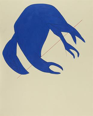 Painted in 1965, it depicts four ghostly figures in long yellow robes about to board two ships, and marked a significant trend in Sabavala’s work,