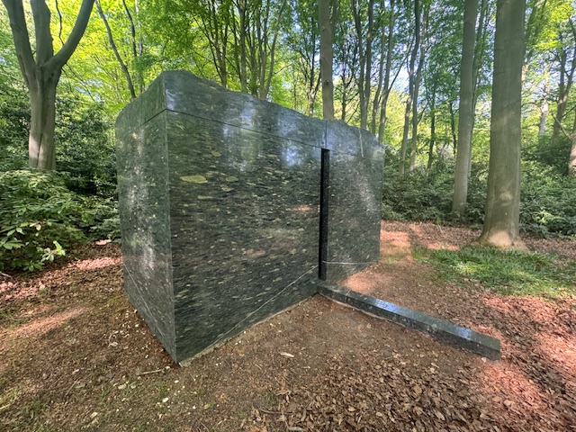 It’s possibly the most instantly appealing work in the grounds and emerged, unexpected, when a large boulder was split into slices and revealed what looked like bodies and ghostly faces. Cox’s sculptor’s role came into play with the void between the slices, accessible through tempting gaps.