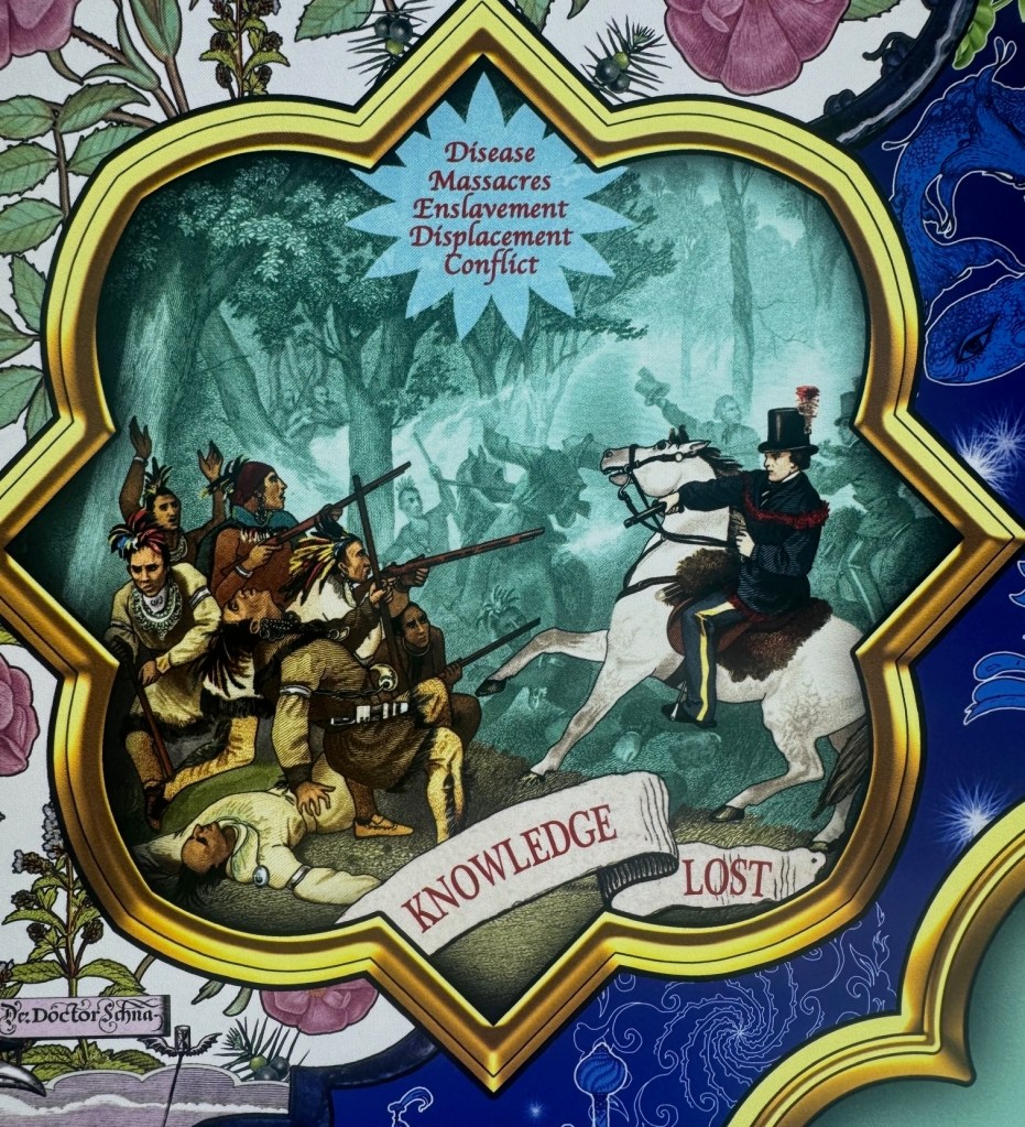 The result is an exhibition titled SINGH TWINS: Botanical Tales and Seeds of Empire that is open till April 12 in the Gardens’ Shirley Sherwood Gallery of Botanical Art. It reflects the way that museums and other British institutions have become increasingly willing in recent years to look into their collections and expose what the twins call “the darker side of what is revealed”.