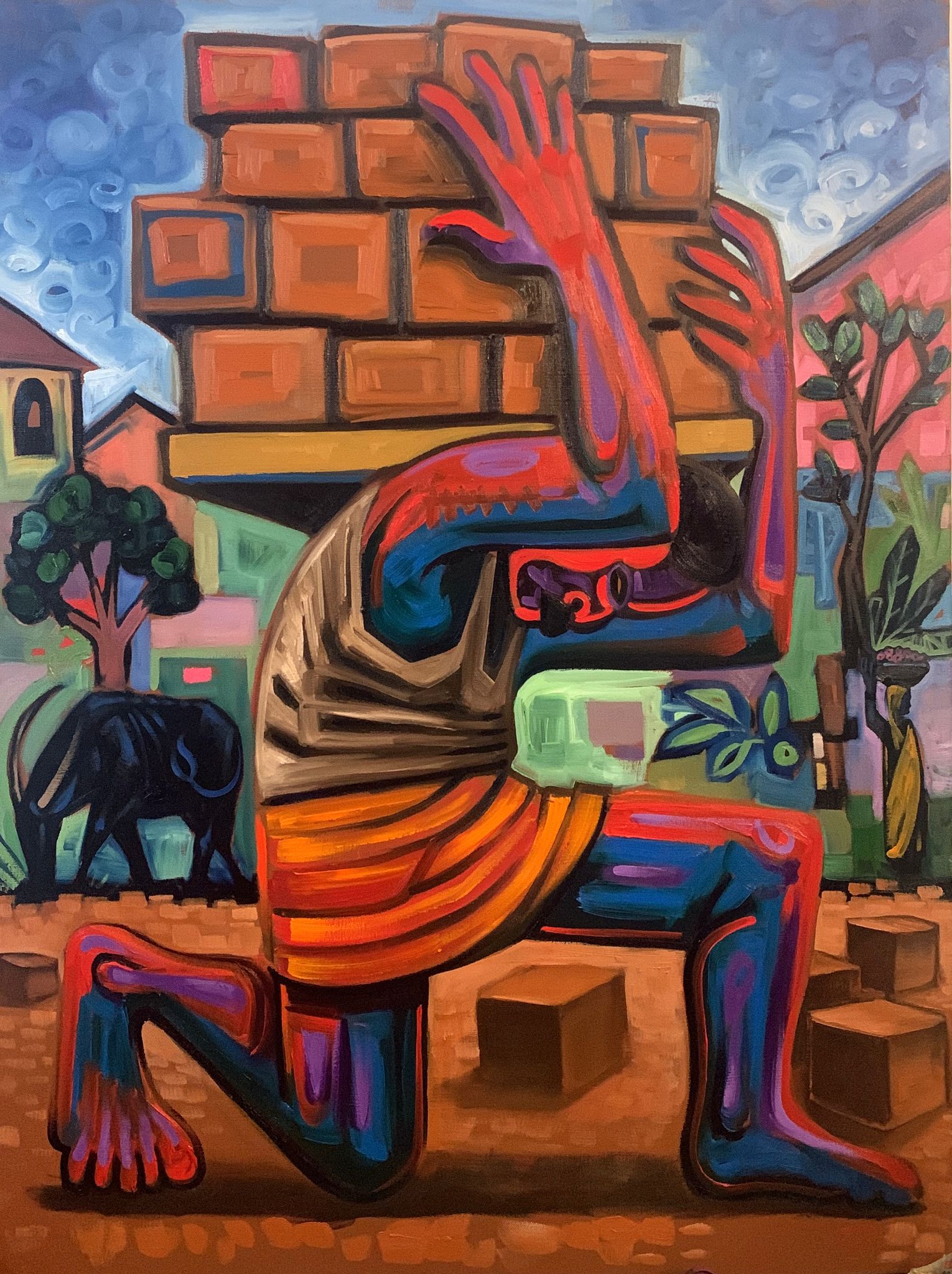 In an introduction to the exhibition, Solomon writes “Hard labour is all around us in myriad forms from the raising of a family to the building and maintenance of our cities and societies. Both are foundational in the fabric of existence…My first solo exhibition is about that hidden uncelebrated effort”.