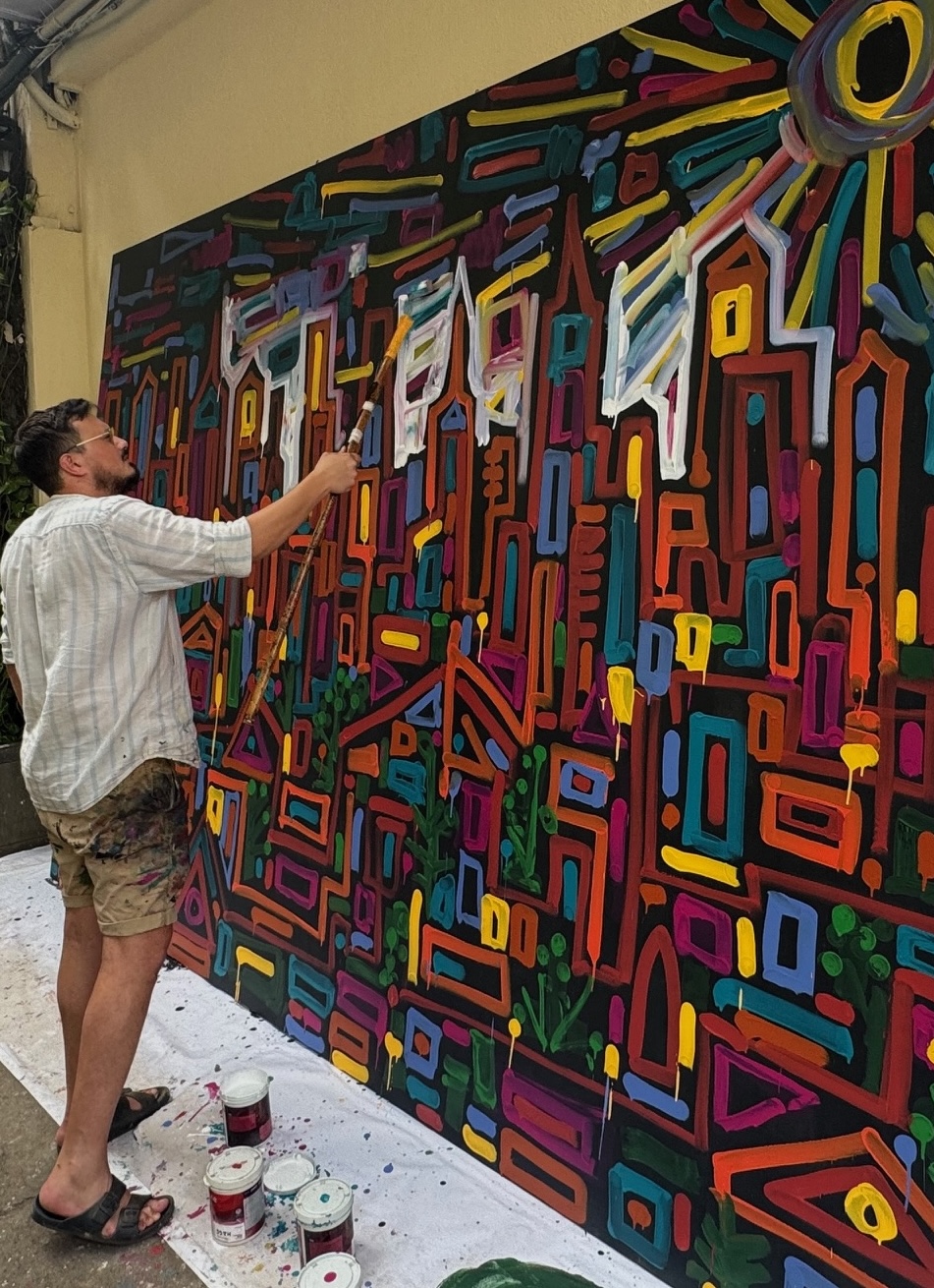 Back in Jerusalem, his views on graffiti changed. “I felt it was a beautiful holy place, and I shouldn’t do graffiti”. He turned to murals and street art, “trying to add value”.