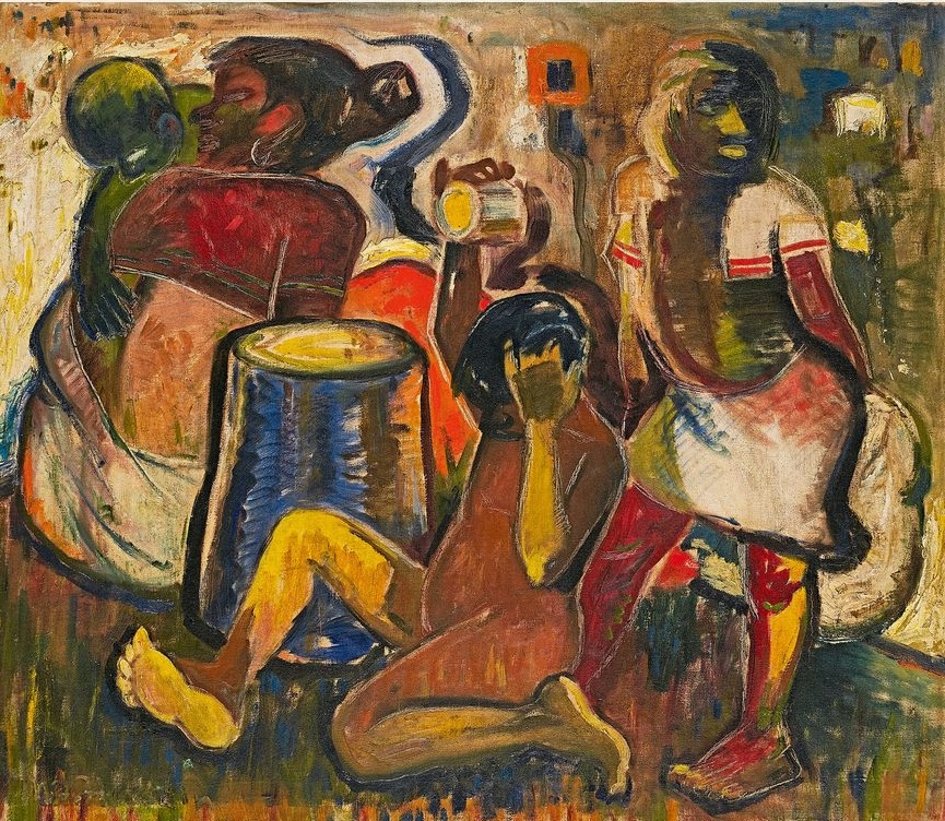 Surprisingly Krishen Khanna, the only surviving major artist from the Raza, Souza and Husain mid-20th century Progressives Group, who has just celebrated his 100th birthday, does not have a painting on show, though his famous bandsmen do appear as a group of bronze statues.