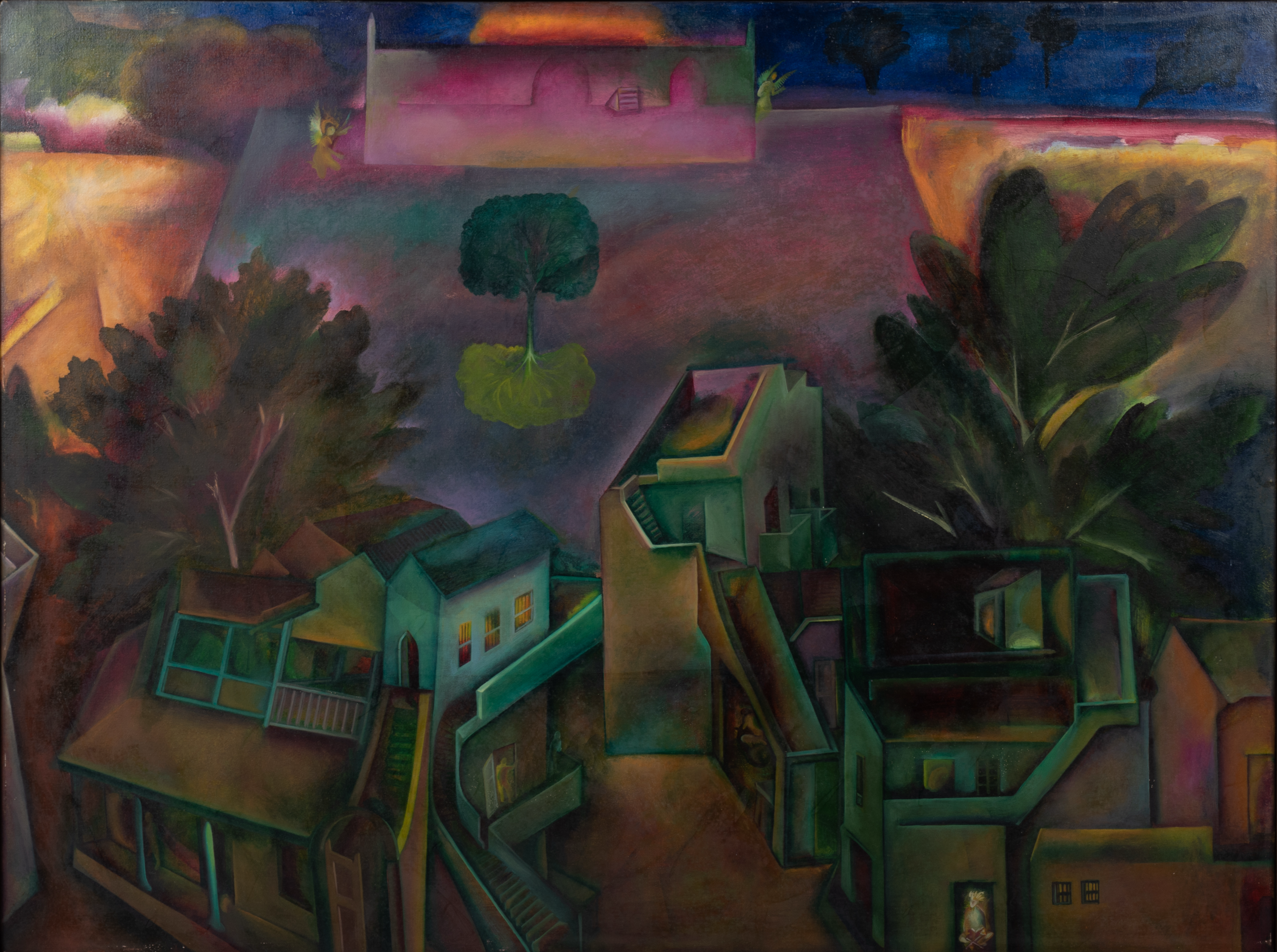 Sheikh says he painted this untitled oil on canvas, described in the catalogue as evoking “haunted twilight”, in the style of Bhupen Khakhar because “I wanted to know how Bhupen managed with light!”