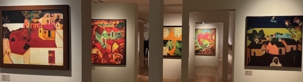 Kaarawaan, a massive 80in x 257in acrylic on canvas brings together all aspects of the artist’s life with countryside, towns, a tree of life and friends clustered on the right. It is his latest work and is in the KNMA collection.