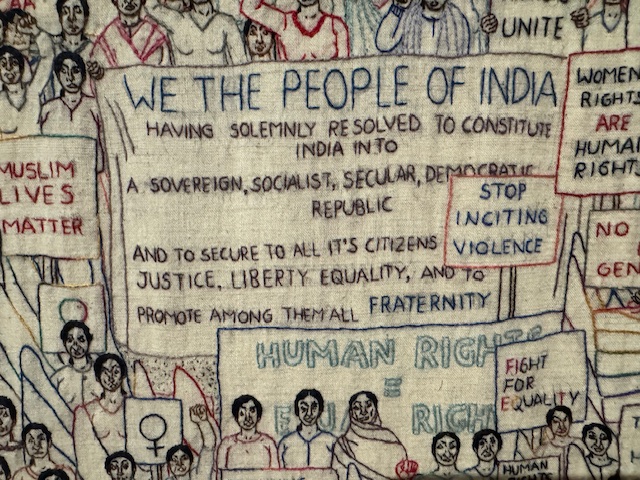 A detail from “The Longest Revolution”, an embroidery at SOAS by Nagpur-based Varunika Saraf. (c Chemould Gellery Mumbai)